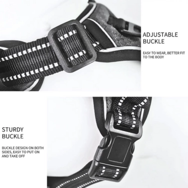 For added safety and control, a reinforced back handle offers immediate grip in high-traffic areas or when helping your dog over obstacles. The reflective stitching enhances visibility in low-light conditions, making it ideal for early morning or nighttime walks. Designed to distribute pressure evenly across your dog’s chest and shoulders, this harness reduces strain on the neck and helps prevent choking—especially beneficial for dogs that pull.