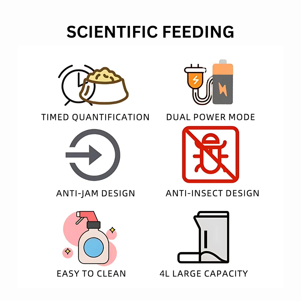 - Automatic Feeding: Set up automatic feeding schedules easily to ensure your pets eat regularly and develop healthy eating habits.