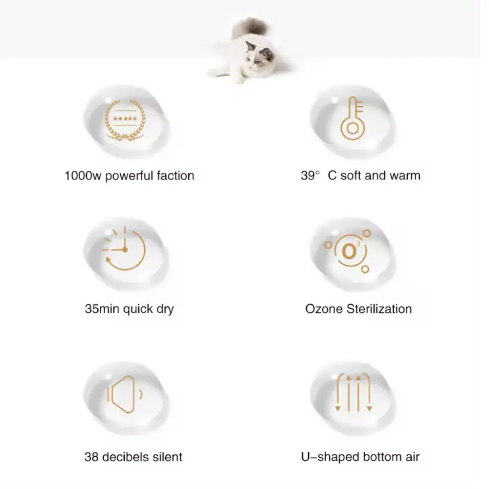 - quiet and comfortable drying process environment where pets can relax and sleep