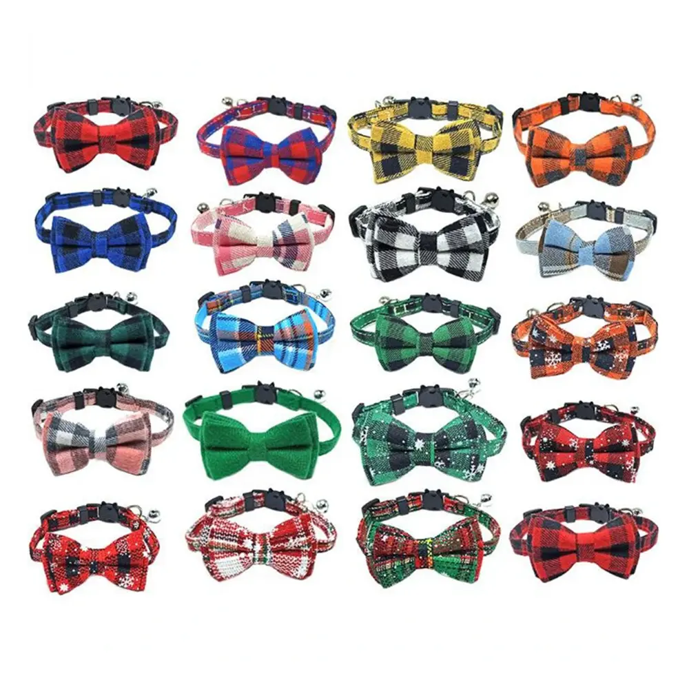 The new style pet collar bow, cloth fabric, is skin-friendly, breathable, and soft. The four-season general-hand tailor detachable bow includes a bell, adjustable tightness, durability, and wear resistance.