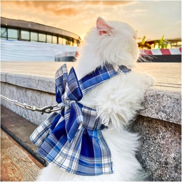 Take your feline friend on safe, stylish outdoor adventures with the Comfortable Cat Harness and Adjustable Leash Set. Designed with both fashion and functionality in mind, this charming harness features a breathable mesh interior and a fashionable plaid exterior, complete with a decorative bow for a refined look. Whether you’re heading to the vet, exploring the backyard, or enjoying a walk through the neighborhood, this harness ensures your cat stays comfortable and securely in place.