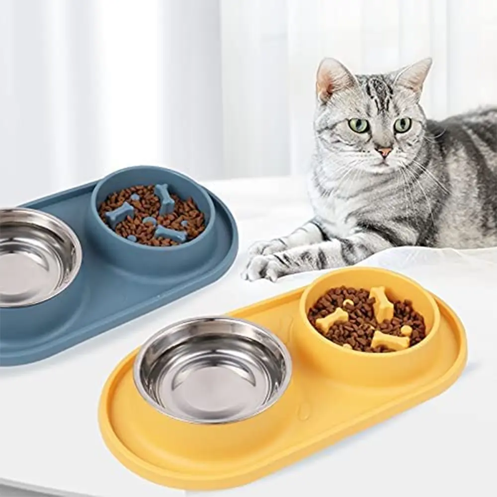 features a non-slip base to keep the bowls securely in place during mealtime, reducing spills and mess.
