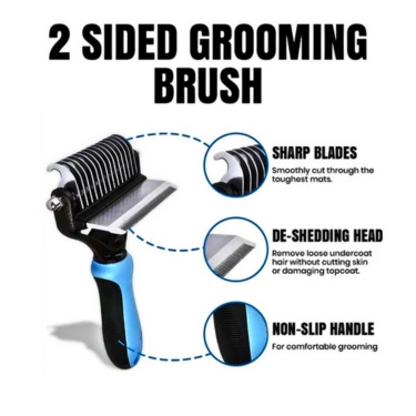 - Dual-sided design: soft bristles for smooth coat and metal pins for detangling.