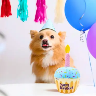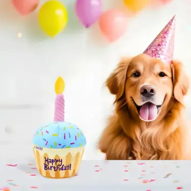 Crafted from soft, snuggly fabric, it’s perfect for playtime and even better for cuddle time. Whether it’s their birthday or just another tail-wagging Tuesday, this toy turns every day into a celebration—with colorful icing, candles, and sprinkles to match.