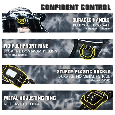 • Multiple adjustable straps across the neck and chest ensure a snug, chafe-free fit for dogs of all shapes and sizes.