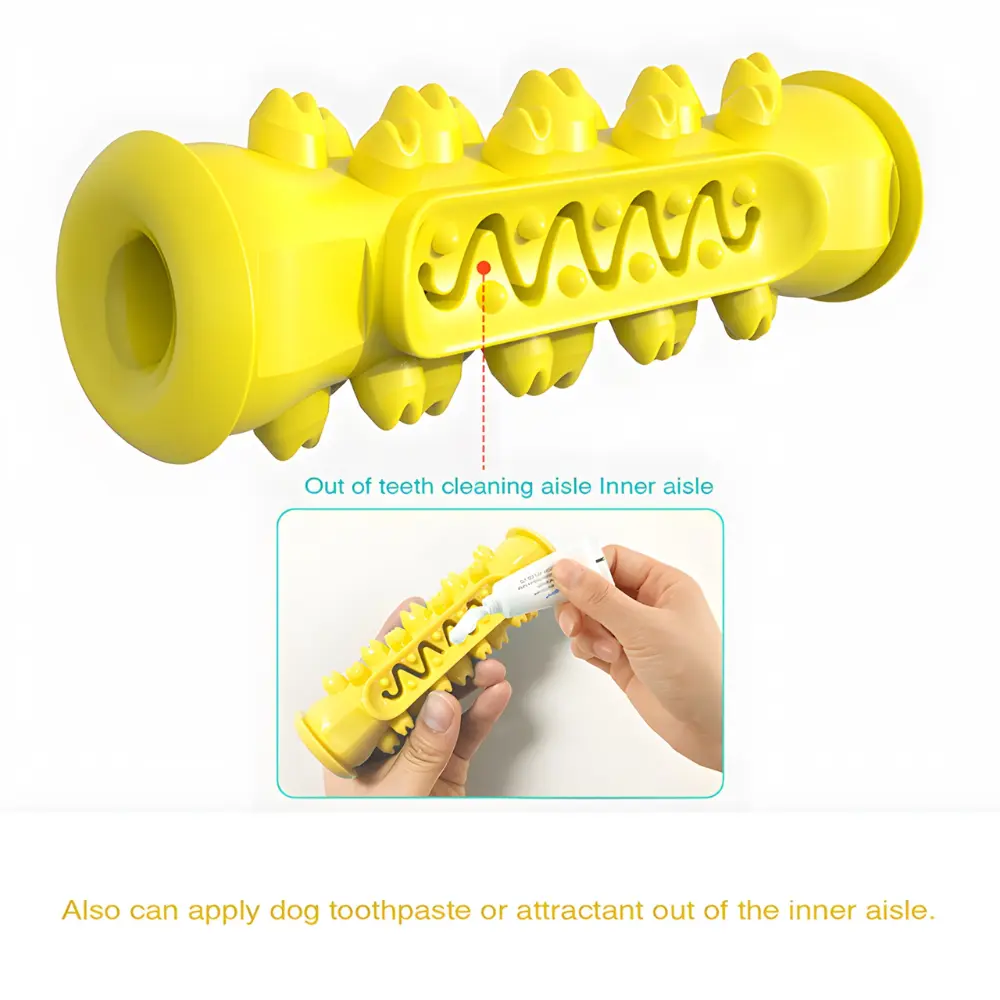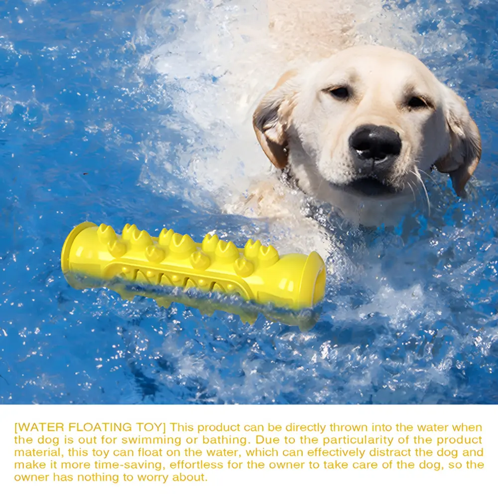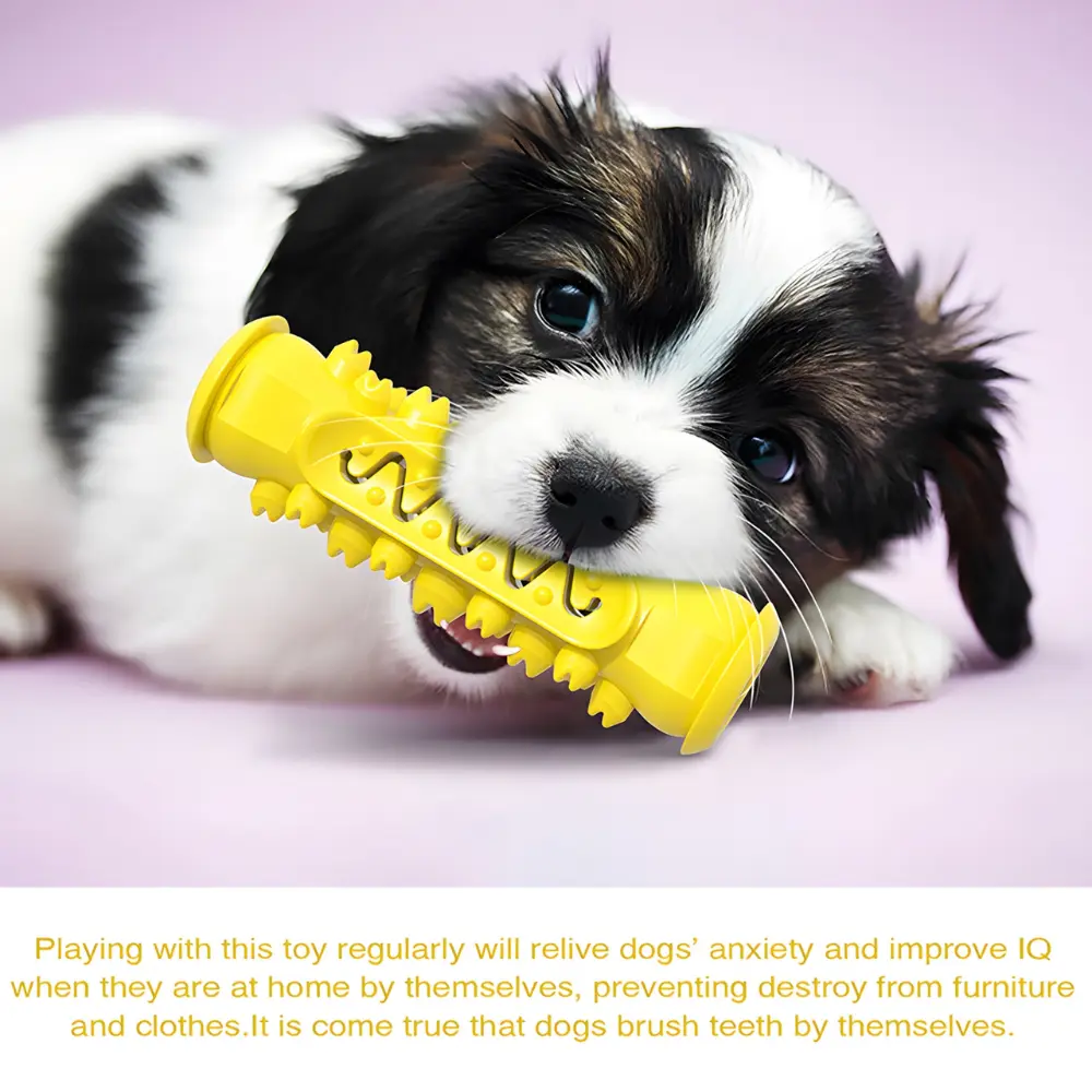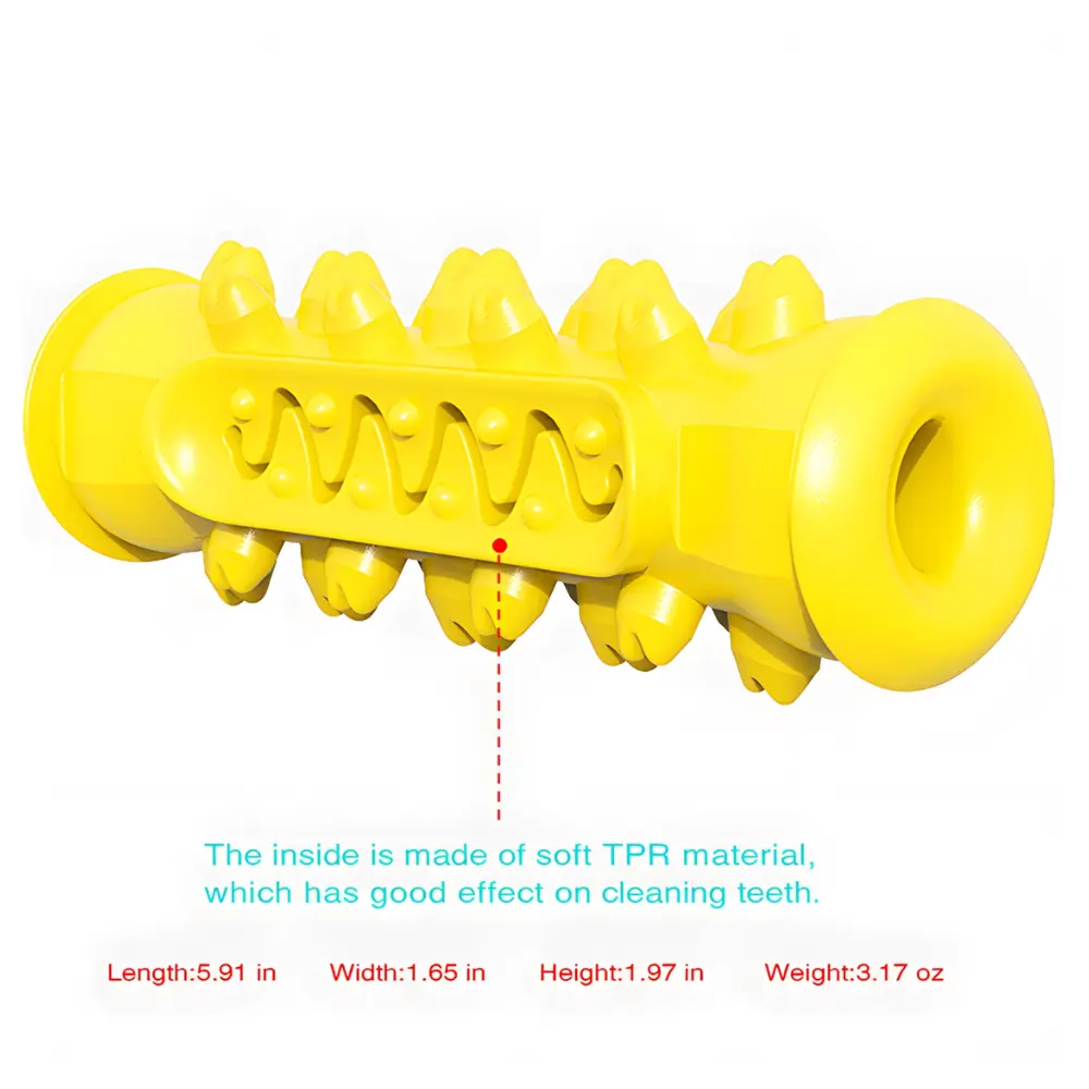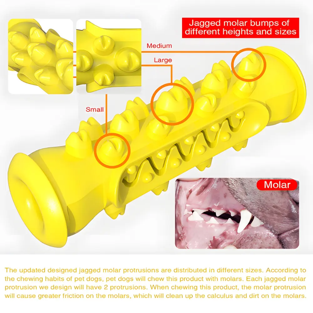 Upgraded design: The serrated teeth can better clean the dirt and stones on the back teeth of pet dogs and can place dog food or fine snacks in the tooth cleaning channel.